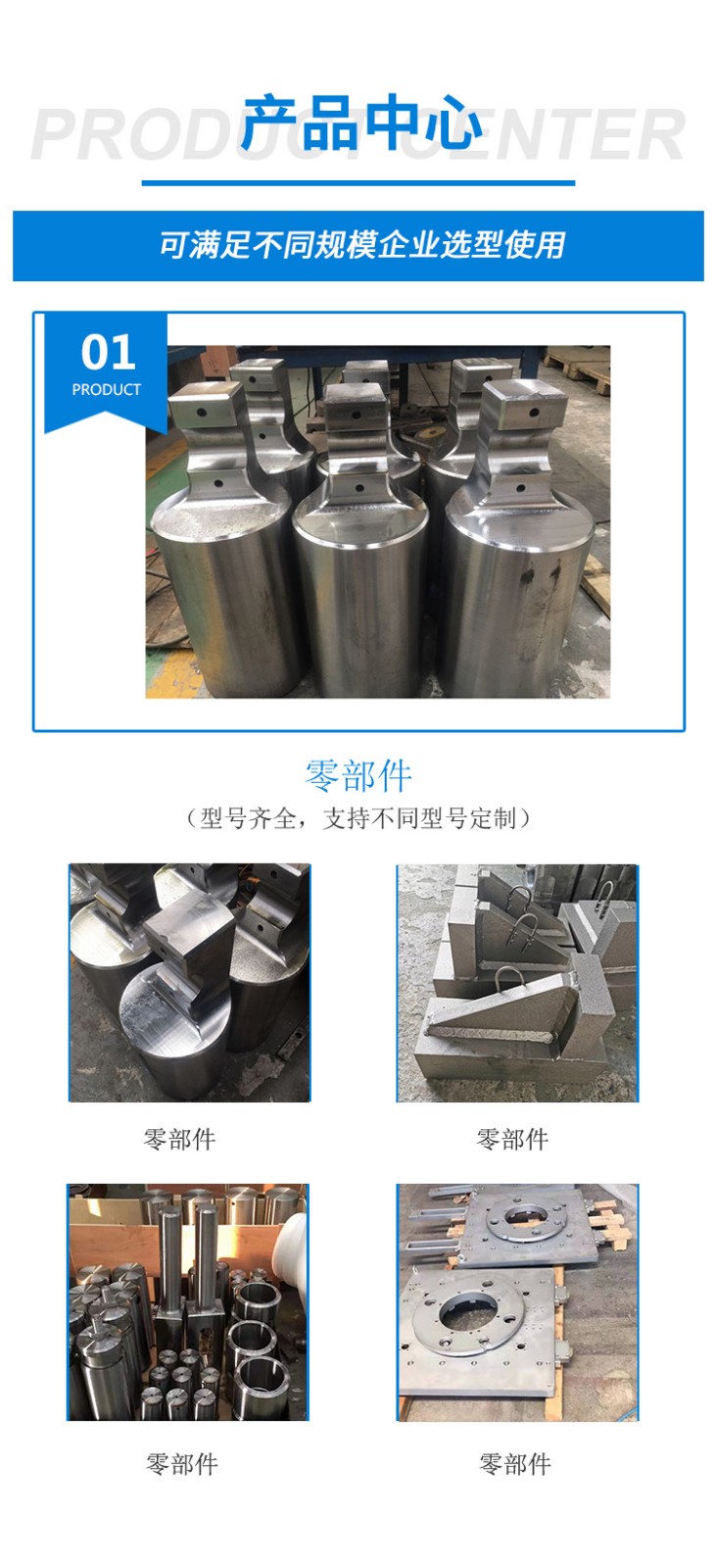 主要產品是大型機加工件,各種軸類(光軸,傳動軸,花鍵軸),非標零部件,開卷線用減速機,非標鉚焊結構件,